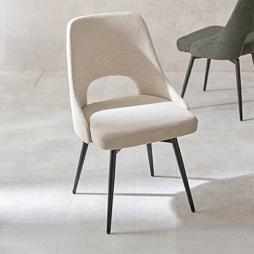 座面が360度回転するので立ち座りがスムーズ。張地はヴィンテージ感のある合成皮革とサラッとした手触りのファブリックから選べます。