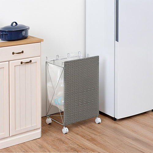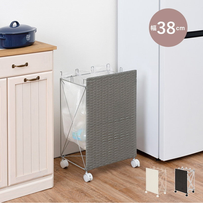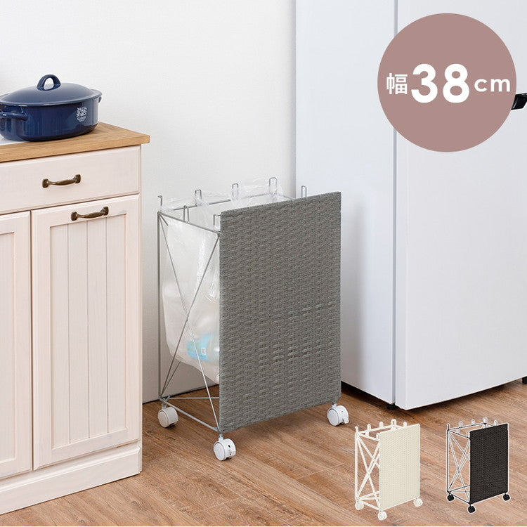 分別ごみ箱ラック 幅38cm ラタン調 ダストボックス 分別 キャスター付き ワイド おしゃれ シンプル キッチン リビング 脱衣所 洗面所 寝室 ラック 防水 北欧(代引不可)