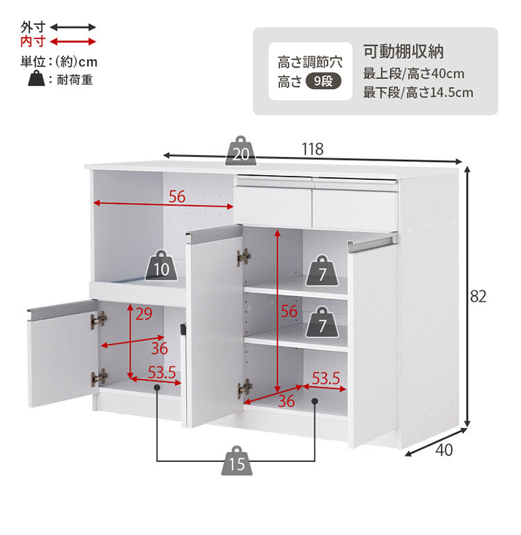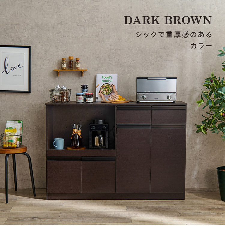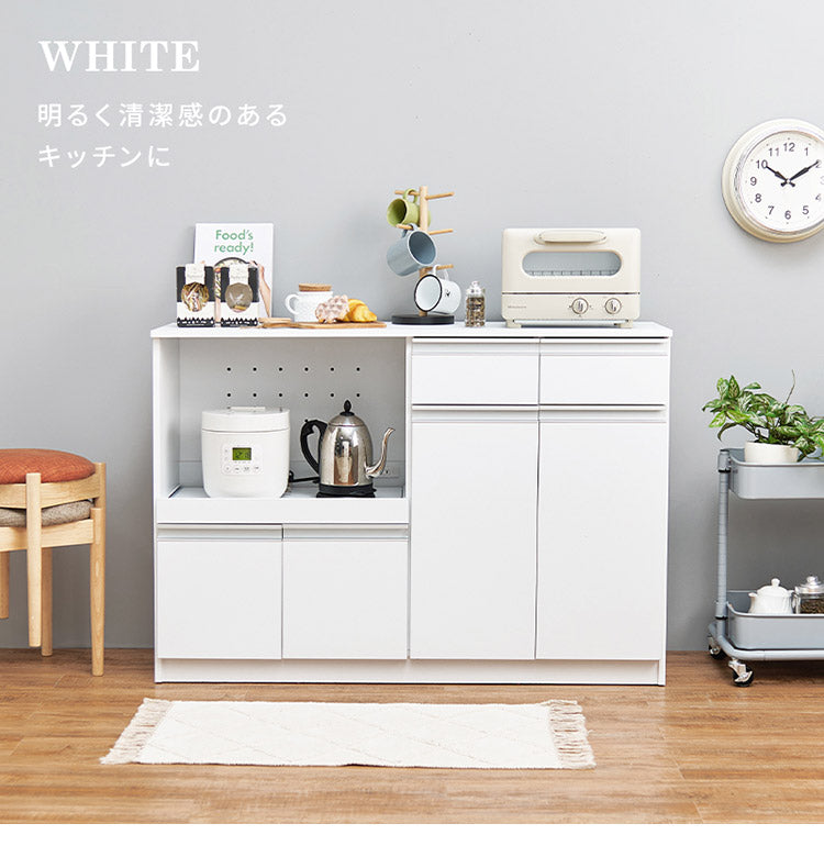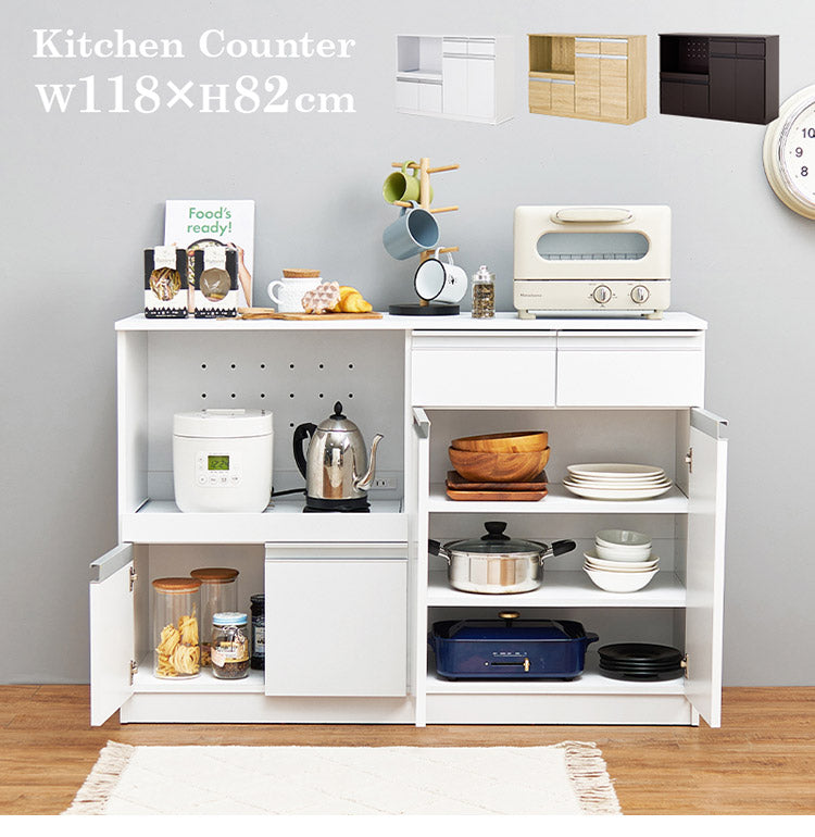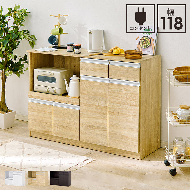 キッチンカウンター 幅118 2口コンセント スライド棚 引出し 扉収納 キッチン収納 キャビネット 食器棚 レンジ台 レンジボード キッチンボード おしゃれ(代引不可)