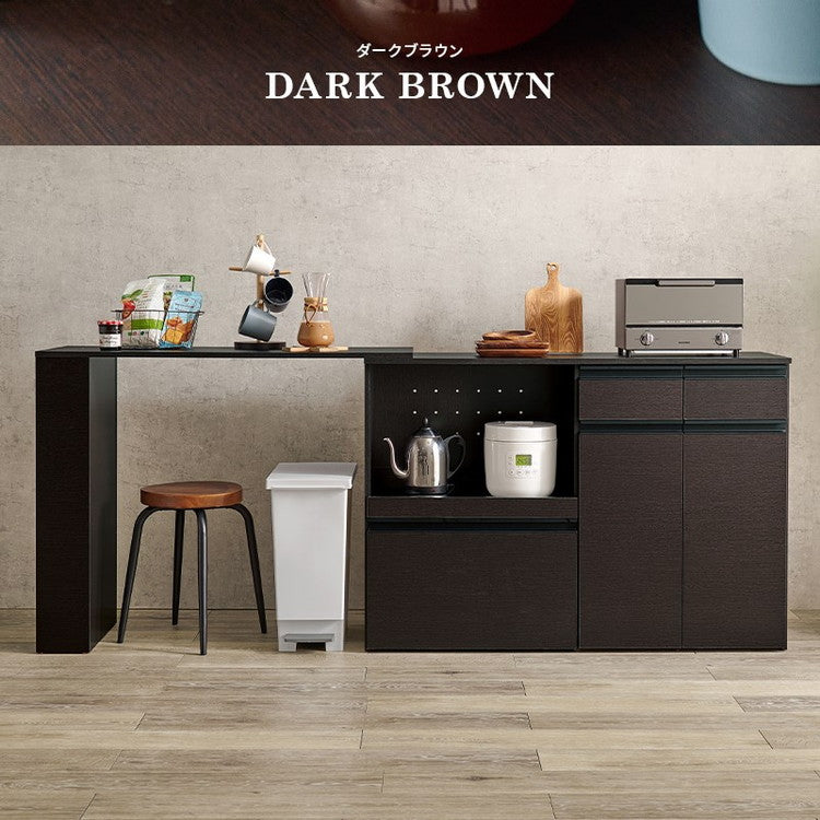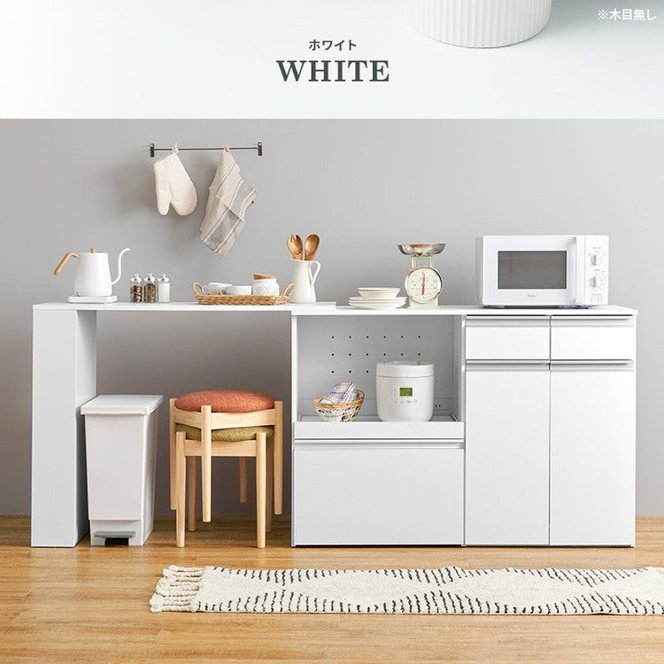 伸縮キッチンカウンター 2点セット 幅133~207 収納庫タイプ 2口コンセント 深型ドロワー スライド棚 キッチン収納 キャビネット 食器棚 レンジ台 レンジボード ごみ箱上ラック ゴミ箱上ラック(代引不可)