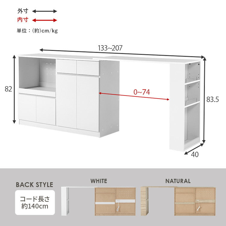 (約)幅133~207×奥行40×高さ83.5cm