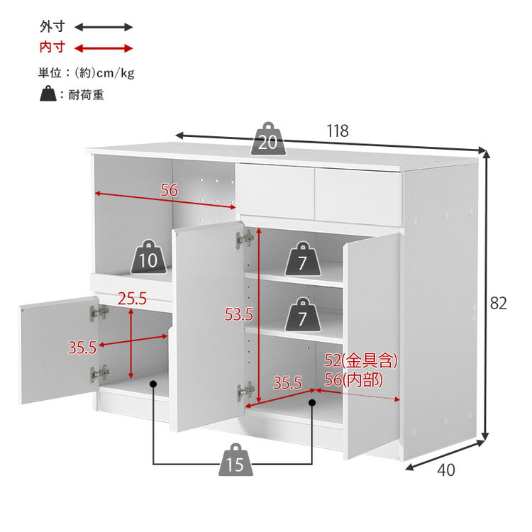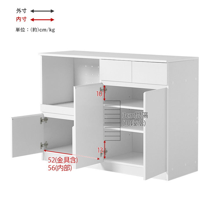 主材:プリント紙化粧パーティクルボード、天板・スライド棚:合成樹脂化粧パーティクルボード