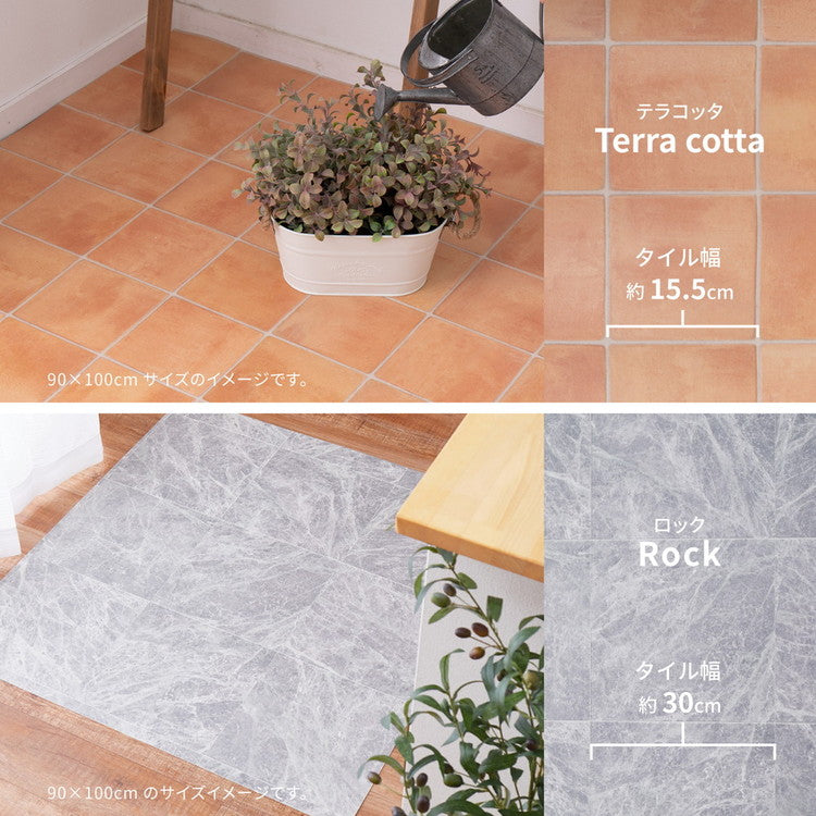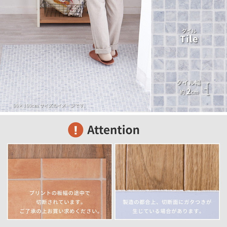 日本製 防炎 抗菌 防カビ 水拭きできるクッションフロアII 90×250 キッチンマット 拭ける フロアシート フローリングマット DIY 大理石 木目 タイル柄 おしゃれ(代引不可)