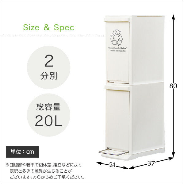 縦型分別ダストボックス【Cocod-ココド-】(2段 スリム 省スペース フタ付き フットペダル ゴミ箱 20L)