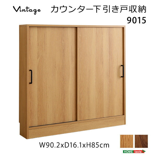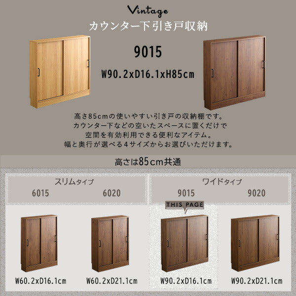 ヴィンテージカウンター下引き戸収納9015 カウンター下収納 引き戸 薄型 幅90cm 奥行15cm キッチン カウンター下 収納 スリム 食器棚 ミニ食器棚 ロータイプ カウンター収納 薄型収納 ラック 台所 棚(代引不可)