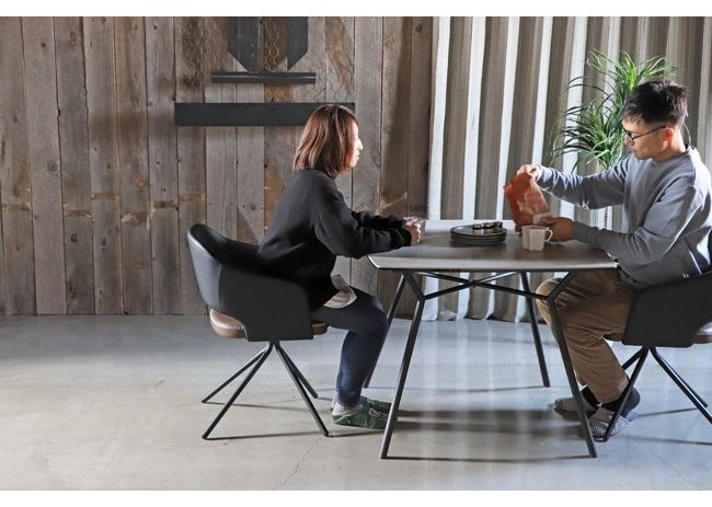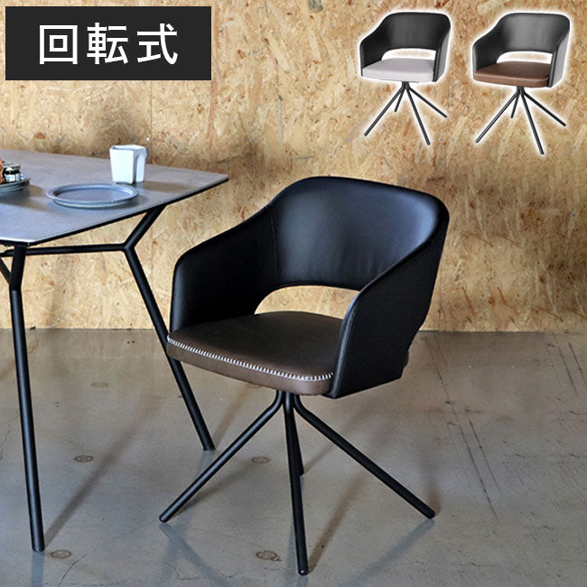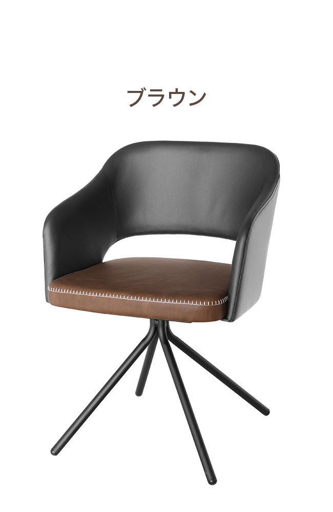 ダイニングチェアー 肘付き 回転式 スチール脚 スピンチェア デスクチェア クッション PUレザー 椅子 イス 北欧 モダン(代引不可)