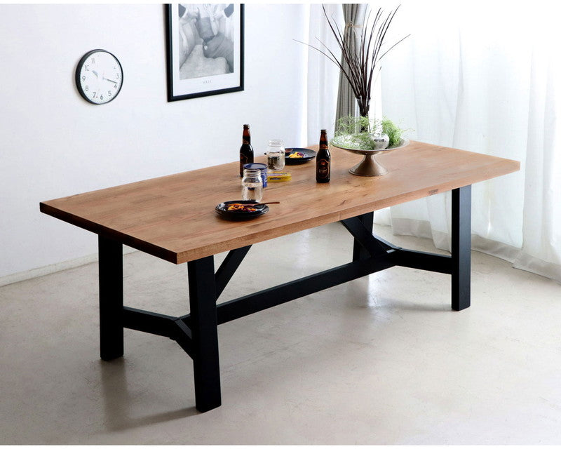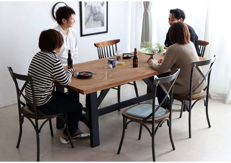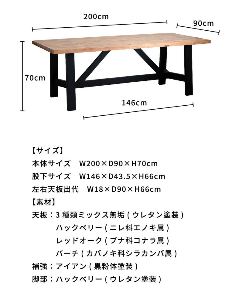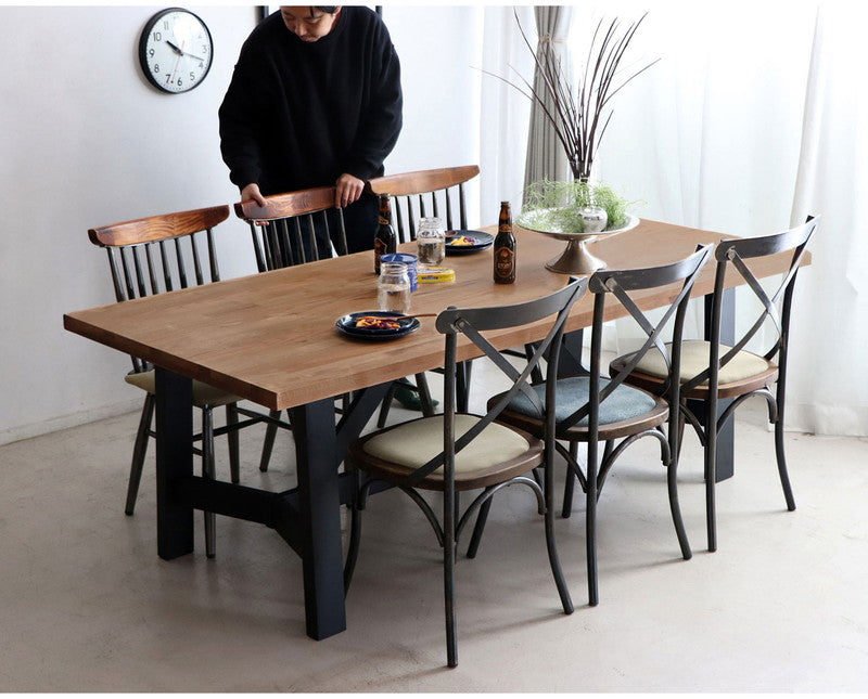 ダイニングテーブル 幅200cm ミックス無垢材 ウレタン塗装 アイアン脚 食卓テーブル 6~8人用 MABEX マベックス 大人数 カフェ風 無骨 天然木 ビンテージ風 おしゃれ(代引不可)