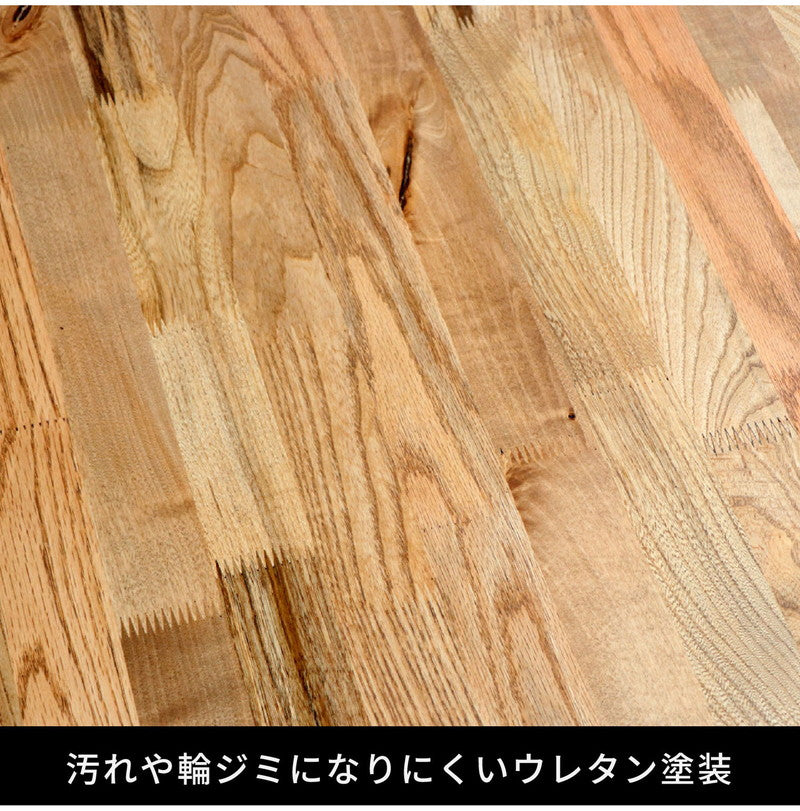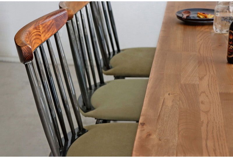 三種類の無垢材をミックスした集成材の天板が印象的なダイニングテーブル。