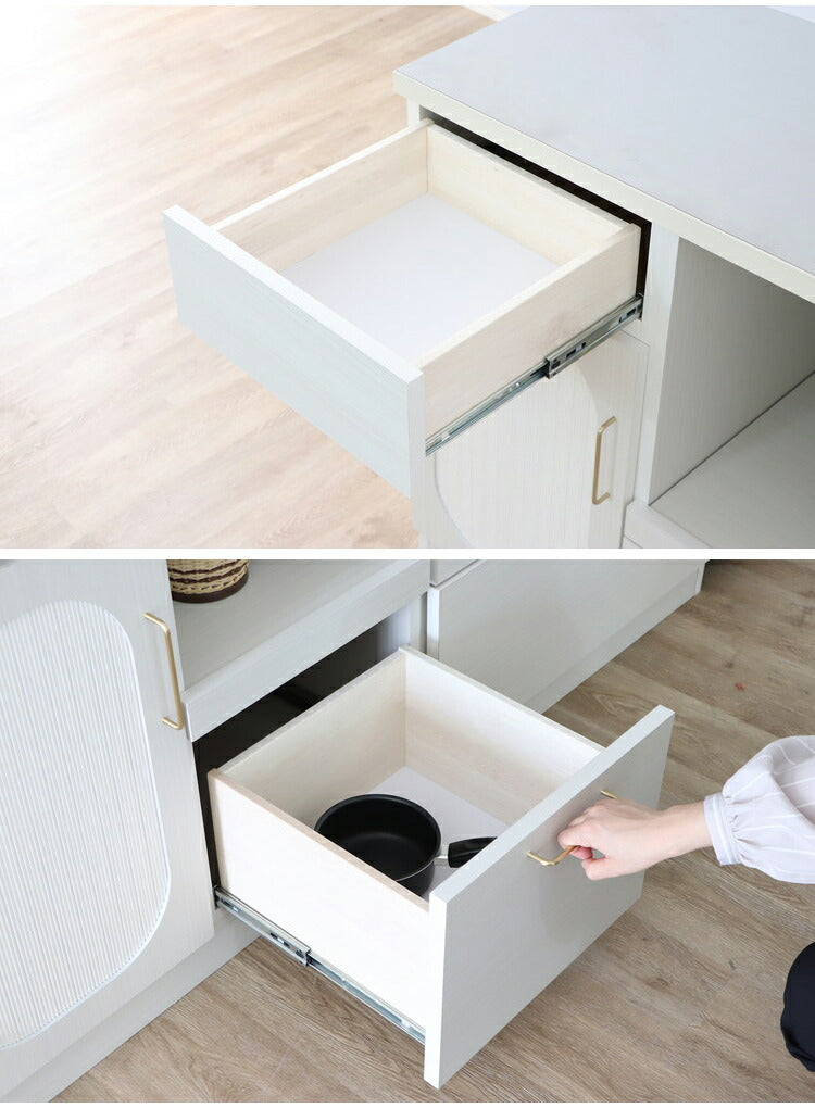 ホワイトを基調としたエレガントなカウンターです。ステンレス天板なので食器や調理用具のちょいおきに便利です。