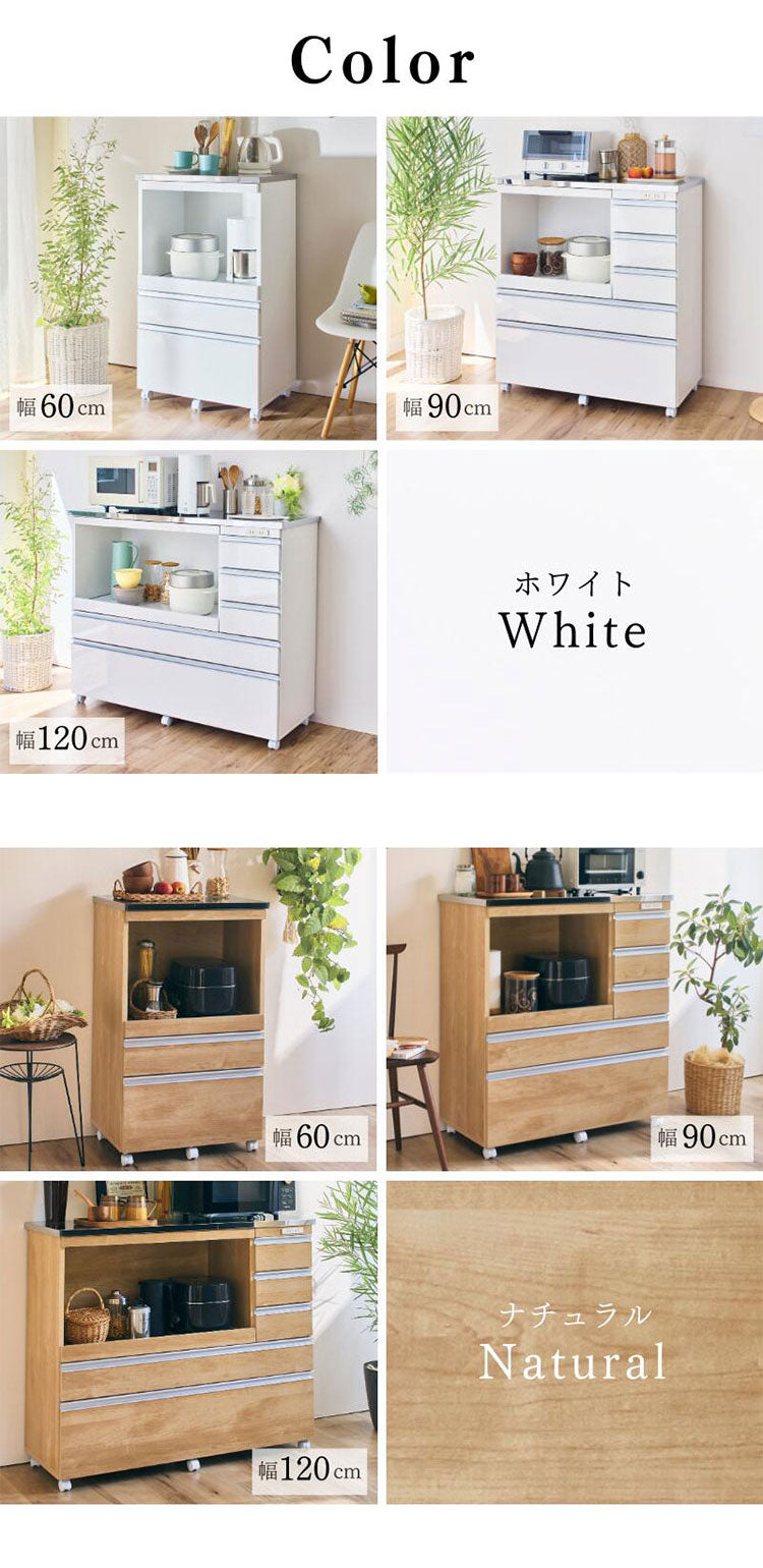 大型電子レンジが入る ステンレス キッチンカウンター 5段 幅90 食器棚 完成品 引き出し ステンレス天板 コンパクト 家電収納 レンジ台 キッチン収納 キッチンラック カップボード キャスター