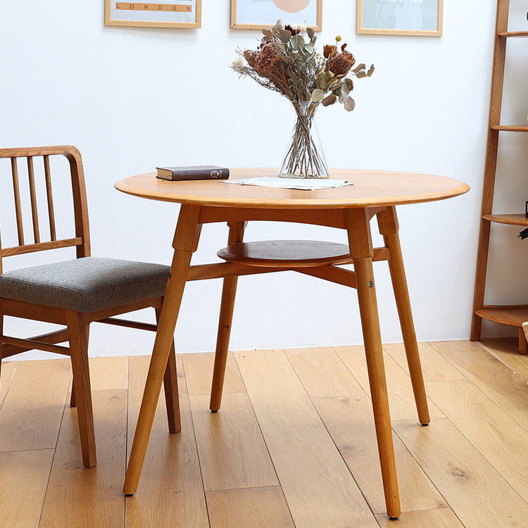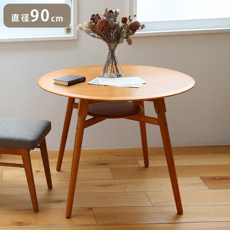 ダイニングテーブル 円形 棚付き 幅90cm 4本脚 アジャスター付き 木製 天然木 丸テーブル カフェテーブル オーク おしゃれ リビング ダイニング 円形テーブル T-3743(代引不可)