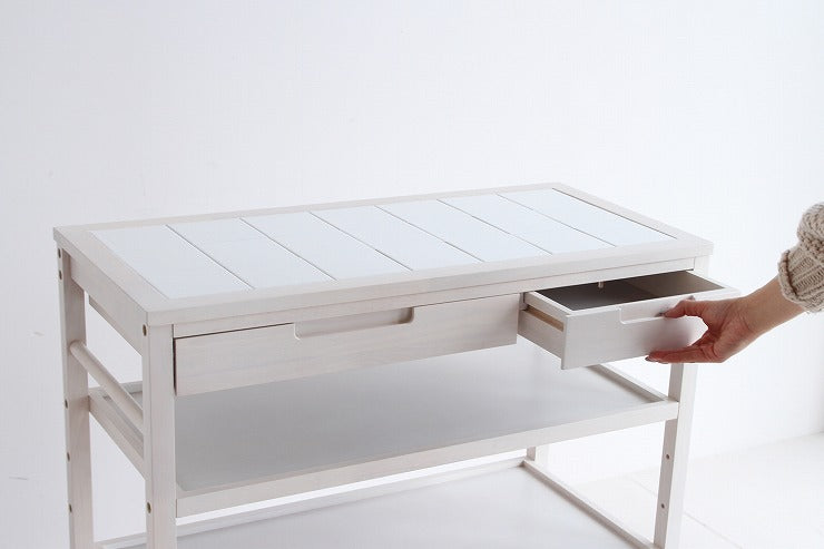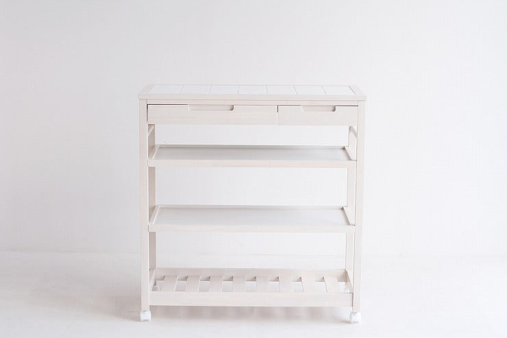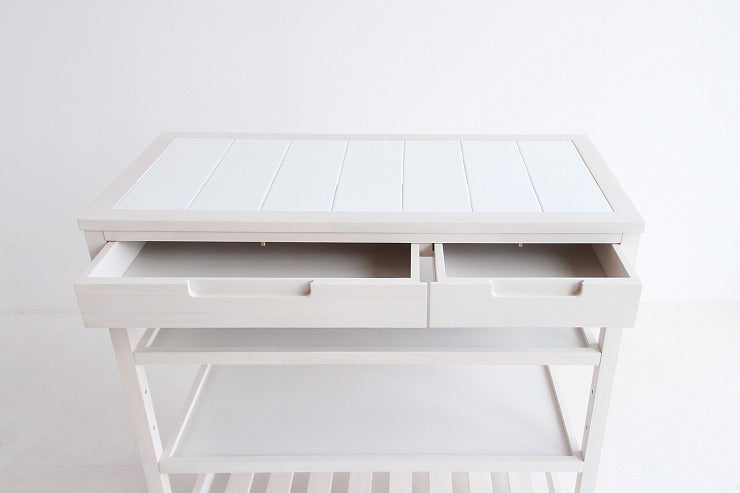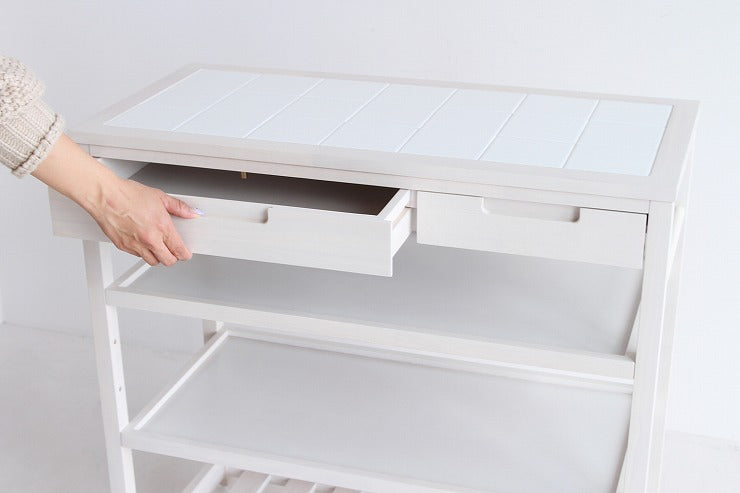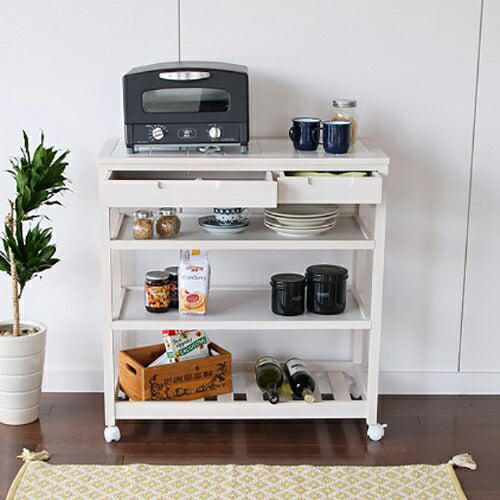 キャスター付きキッチンワゴン 引き出し付き Soup Kitchen Wagon ワイド 天板タイル 台所収納 キッチン 食器収納 スリムワゴン(代引不可)