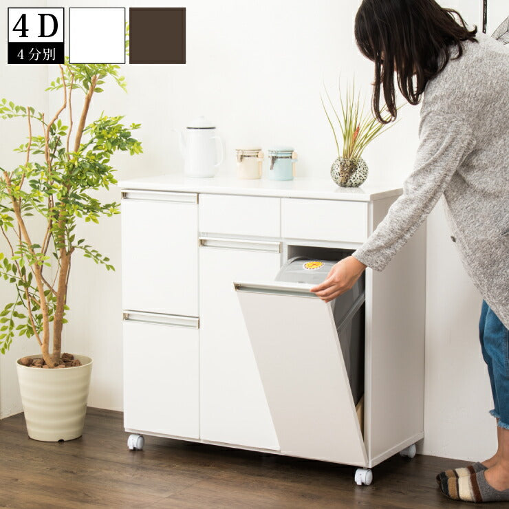 ごみ箱 ゴミ箱 分別 大容量 4分別 完成品 ダストボックス 幅82 スリム キッチンカウンター 鏡面 白 ホワイト キャスター おしゃれ 韓国インテリア(代引不可)