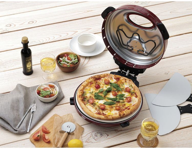 セラミックプレートが回転しながら本格的なピザが焼けるロースター