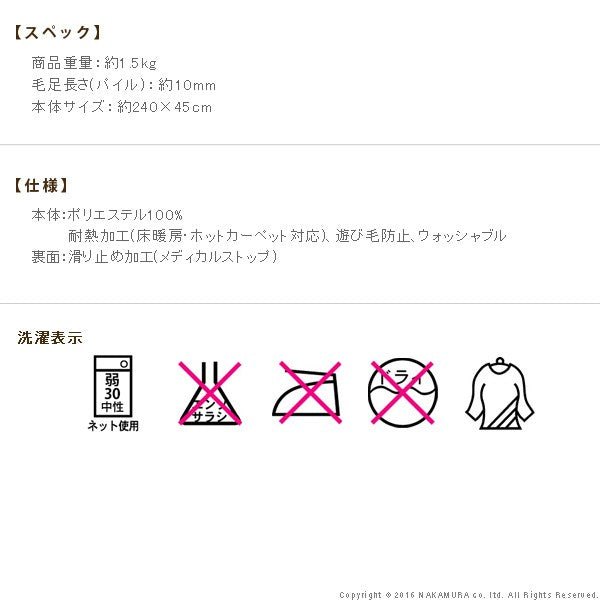 日本製 キッチンマット ベイシックス 240x45cm 洗える 無地 北欧 マット 丸洗い 滑り止め キッチン パイル生地 無地 おしゃれ 国産(代引不可)