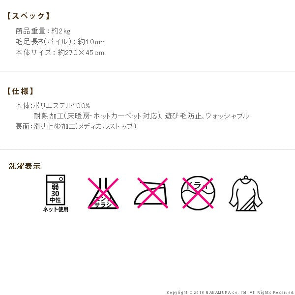 日本製 キッチンマット ベイシックス 270x45cm 洗える 無地 北欧 マット 丸洗い 滑り止め キッチン パイル生地 無地 おしゃれ 国産(代引不可)