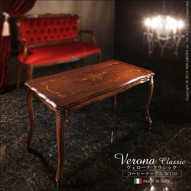 イタリア製 ヴェローナ クラシック コーヒーテーブル 幅100 長方形 四角形 奥行き50.5 100×50.5 センターテーブル おしゃれ クラシック(代引不可)
