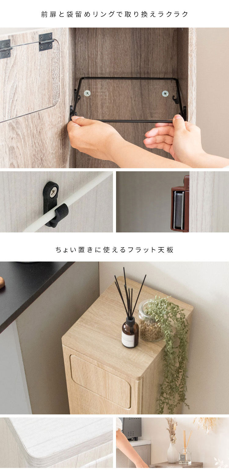 臭いが漏れにくく押すだけで簡単に捨てられるプッシュ扉式。ゴミ袋の着脱も簡単な前扉があり、利便性もバツグンです。