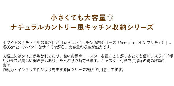 ホワイト×ナチュラルの見た目が可愛らしいキッチン収納シリーズ『Semplice(センプリチェ)』。
