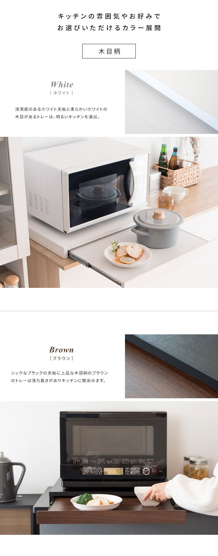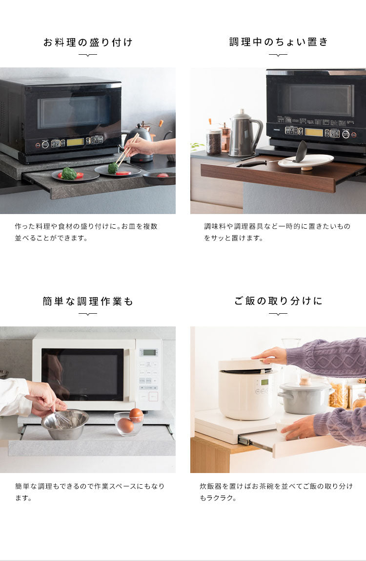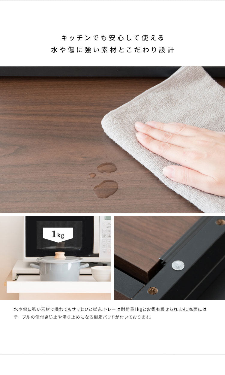 必要な時だけ引き出せる便利なスライドトレーで、使わないときも邪魔にならず、手狭なキッチンのお家やワンルームなど、一人暮らしの方にもオススメです。