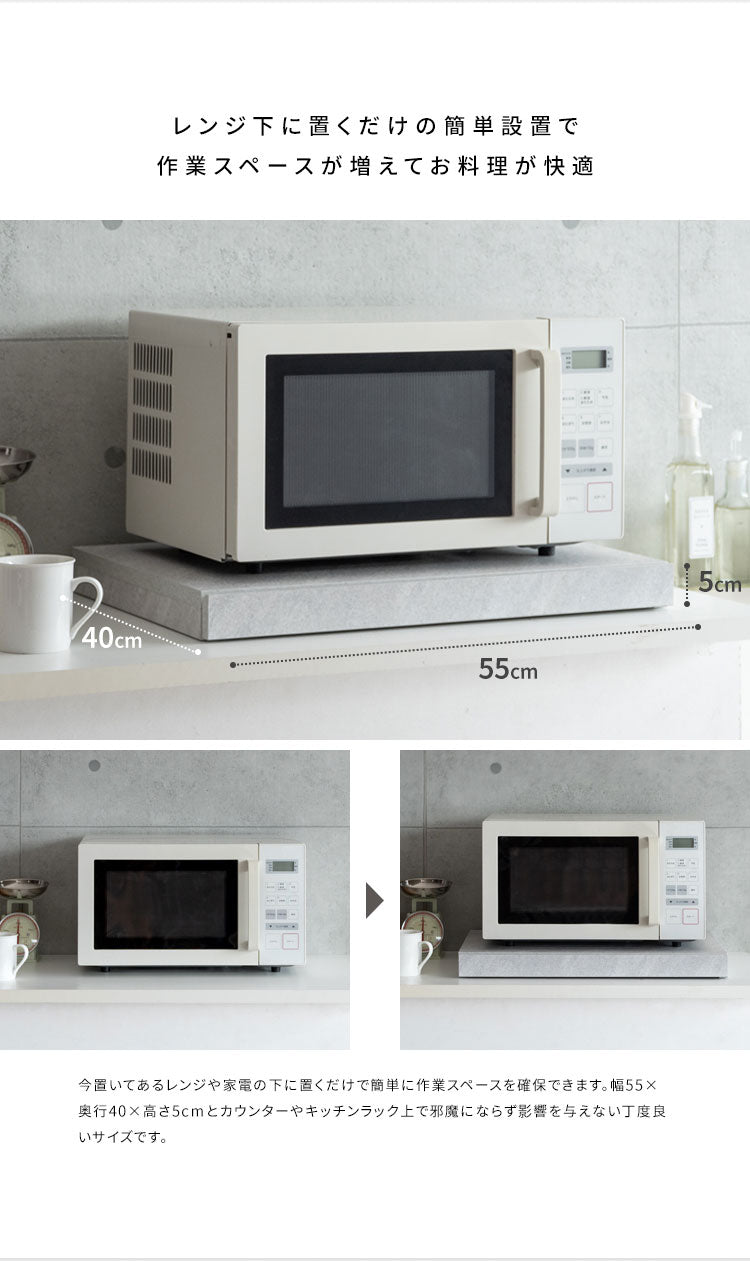 レンジや家電の下に置くだけで作業スペースが作れるレンジ下トレー「Avenir(アベニール)」。トレーに調理器具や料理がサッと置けて家事効率アップ間違いなし。