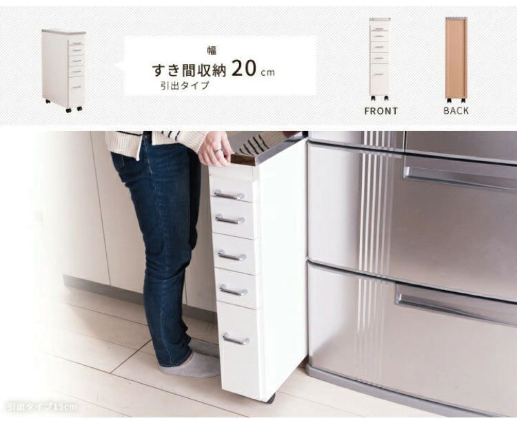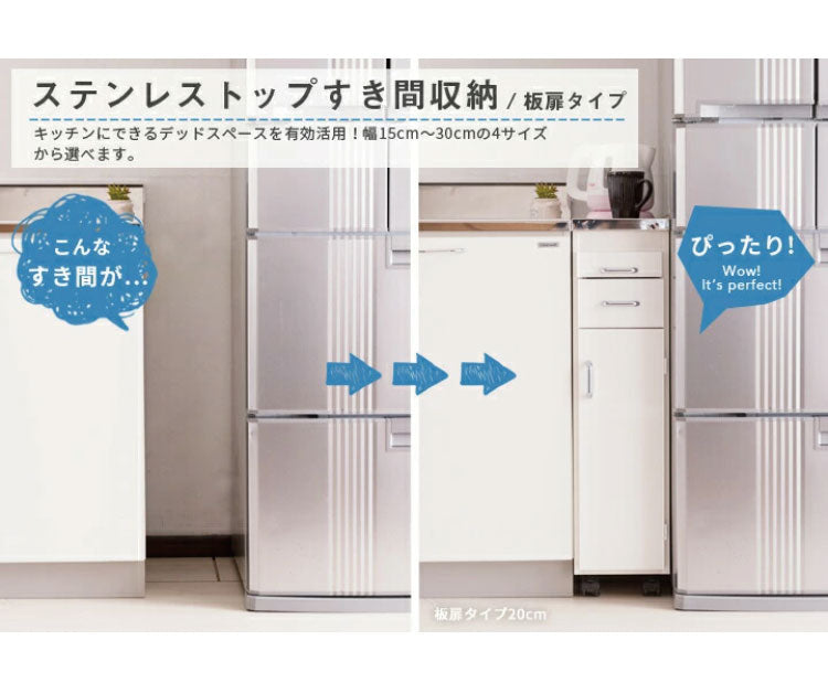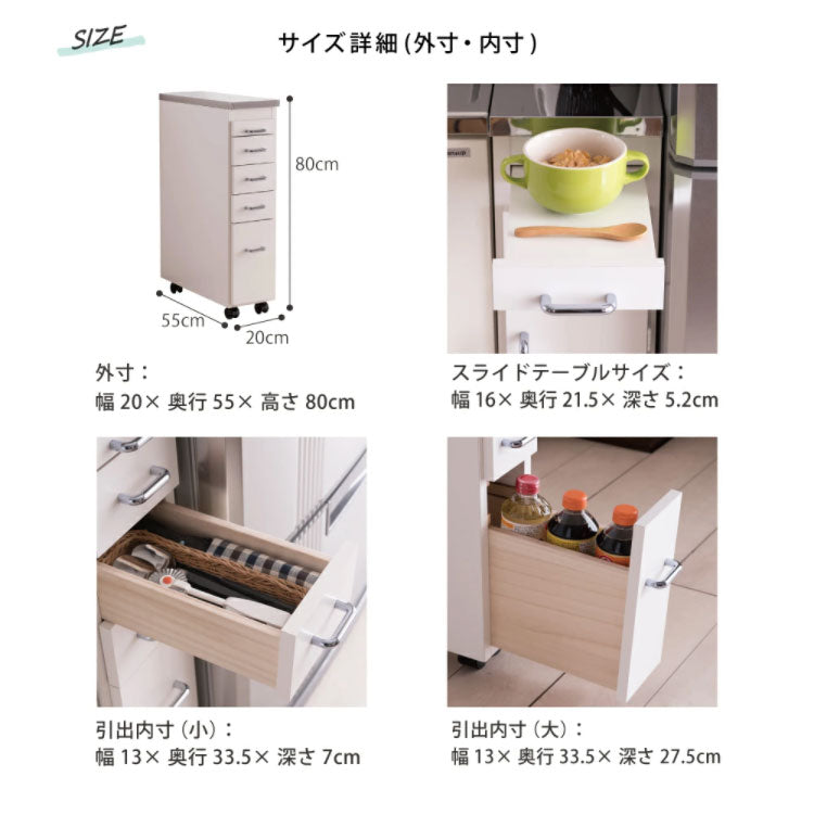 日本製 完成品 ステンレスキッチンワゴン 幅20cm 引出タイプ キッチン収納 隙間収納 国産 キャスター付き スライドテーブル付き 隙間収納 すき間収納 キッチン 収納 キッチン収納 マルチワゴン(代引不可)