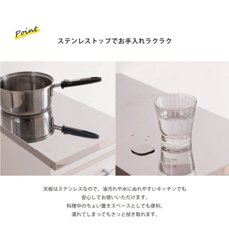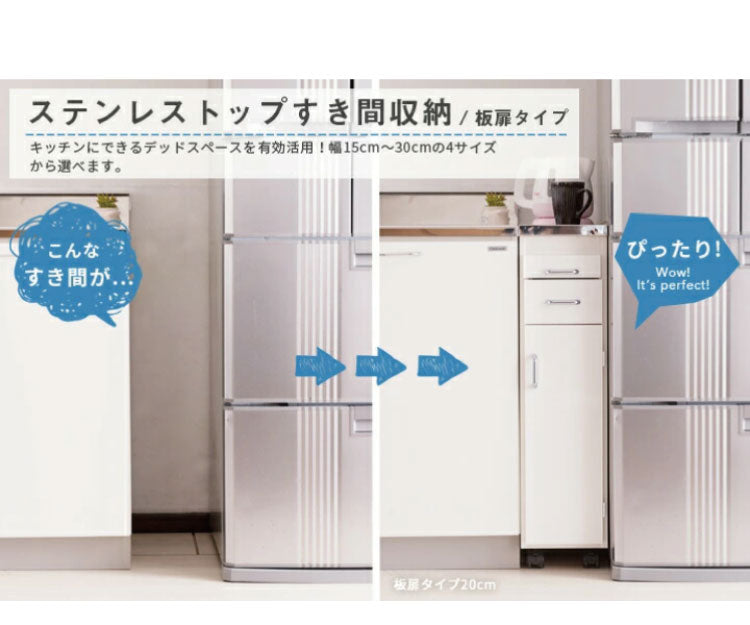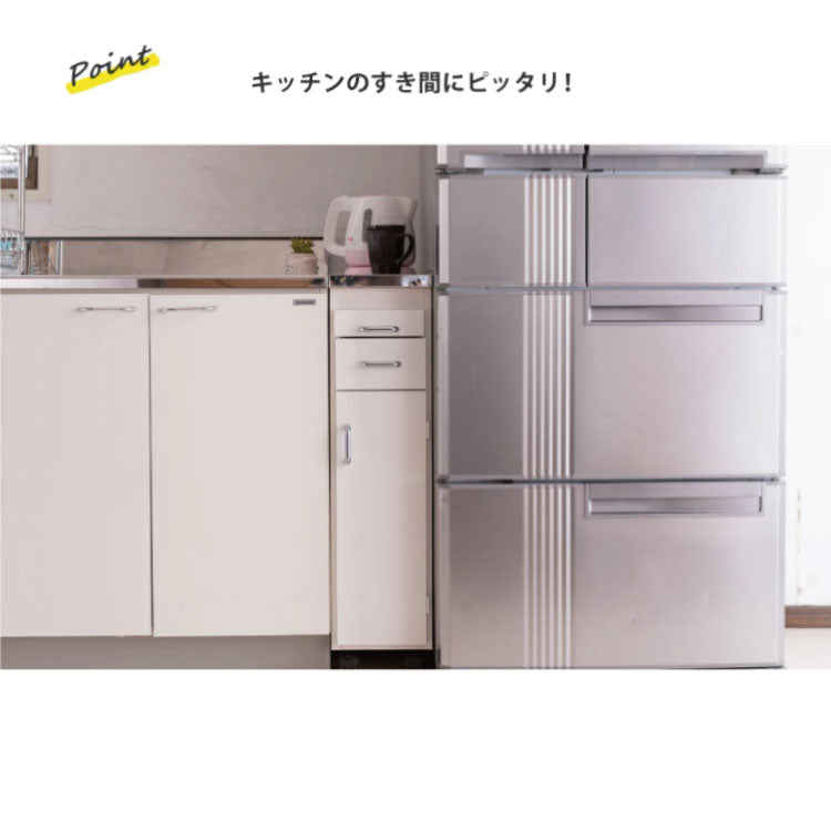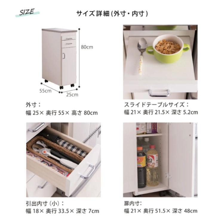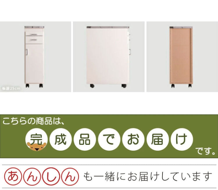 日本製 完成品 ステンレスキッチンワゴン 幅25cm 扉タイプ キッチン収納 隙間収納 国産 キャスター付き スライドテーブル付き 隙間収納 すき間収納 キッチン 収納 キッチン収納 マルチワゴン(代引不可)