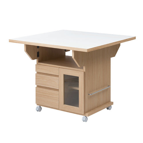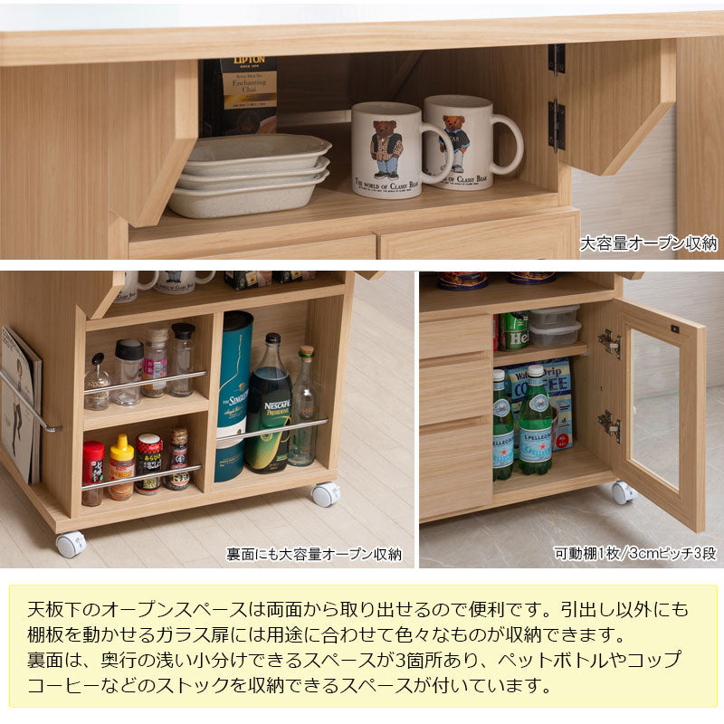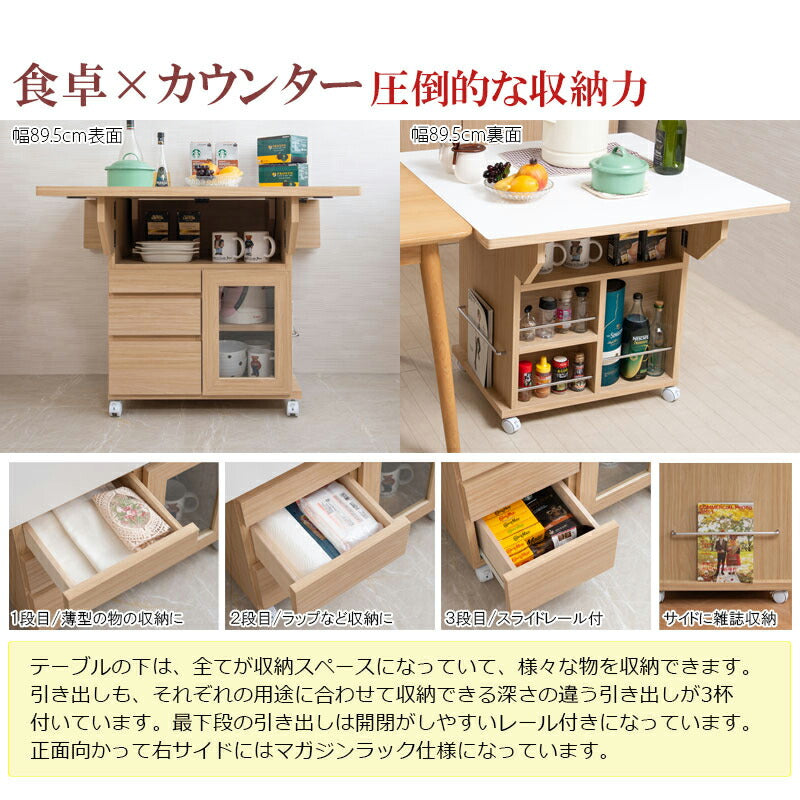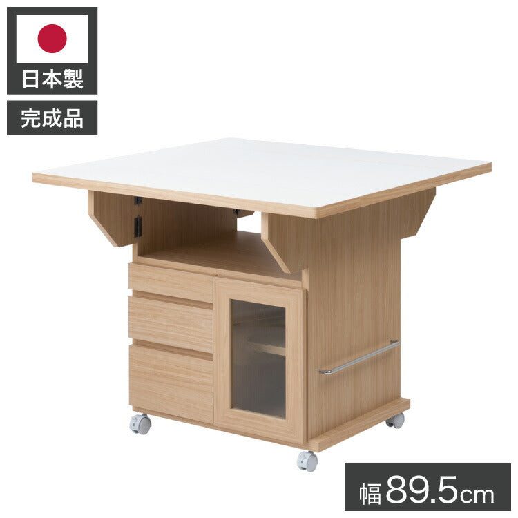 日本製 完成品 大川家具 Butter 幅89.5 高さ70 テーブル バタフライカウンター ナチュラル キッチン収納 おしゃれ 茶 リビング キャスター付き バタフライワゴン 国産(代引不可)
