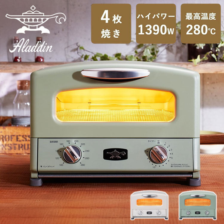 アラジン トースター&グリル 4枚焼き AGT-G13B オーブントースター トースター グリル グリルパン レシピ付き タイマー付き グリーン ホワイト レトロ おしゃれ かわいい Aladdin