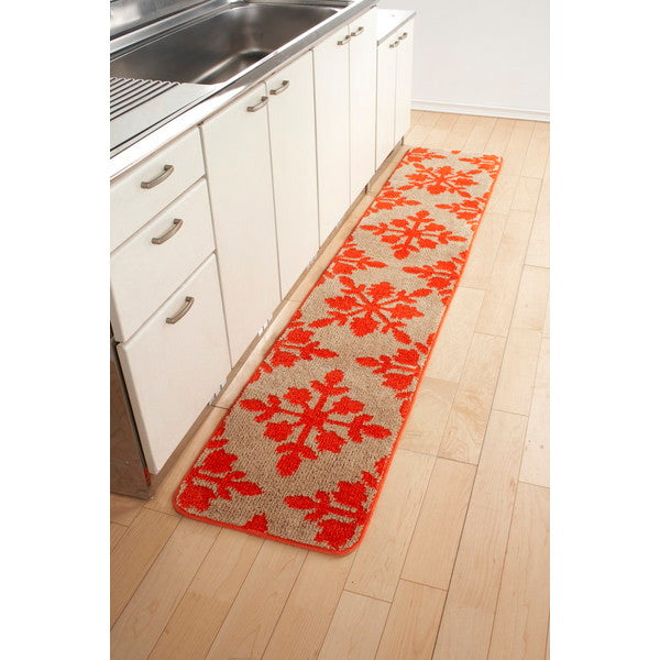 キッチン マット おしゃれ ロングキッチンマットフラリーフ(オレンジ) タテ45xヨコ240(代引き不可)