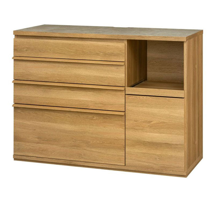 キッチンカウンター レンジ台 食器棚 幅120cm 高さ90cm ナチュラルブラウン 引出4段 コンセント付 メラミン天板 キッチン 家電 収納 コモピア CMA-9012SLNA(代引不可)