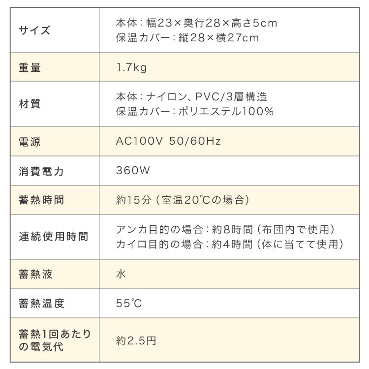 面倒なお湯の入れ替えは一切不要で、15分間蓄熱するだけで最長8時間も暖かさが持続します。