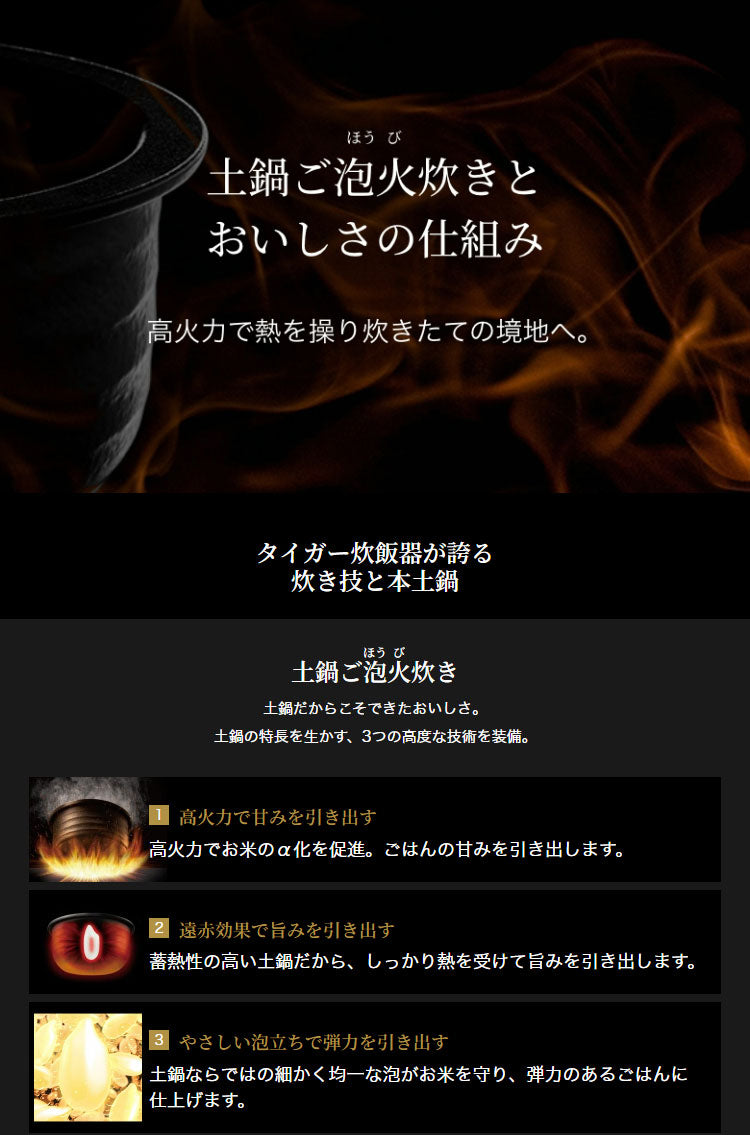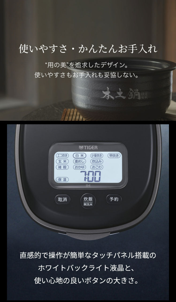 タイガー TIGER 土鍋圧力IHジャー炊飯器 土鍋ご泡火炊き 5.5合 エボニーブラック 本土鍋 遠赤 高火力 炊き分け 少量旨火 玄米 雑穀 麦飯 おこげ お手入れ簡単 甘味 JPL-Y100KG プレミアムモデル
