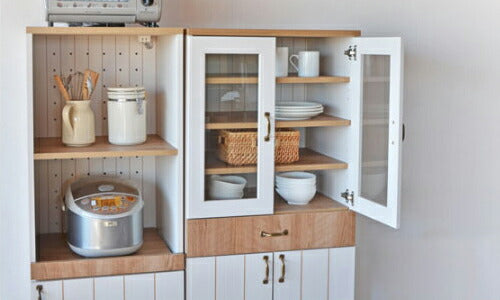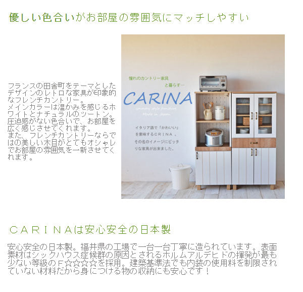 日本製 キッチンキャビネット カリーナ 食器棚 キャビネット キッチン収納 キッチン 食器 キッチンラック ラック 木製 キッチンボード アンティーク フレンチ シンプル かわいい 国産 収納 (代引不可)