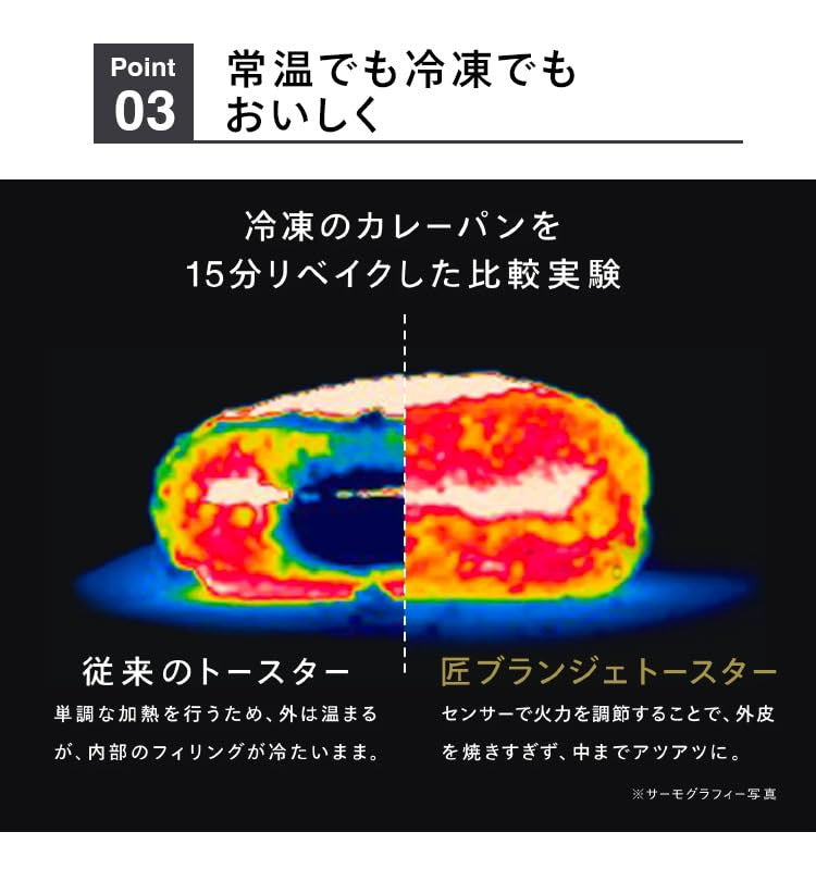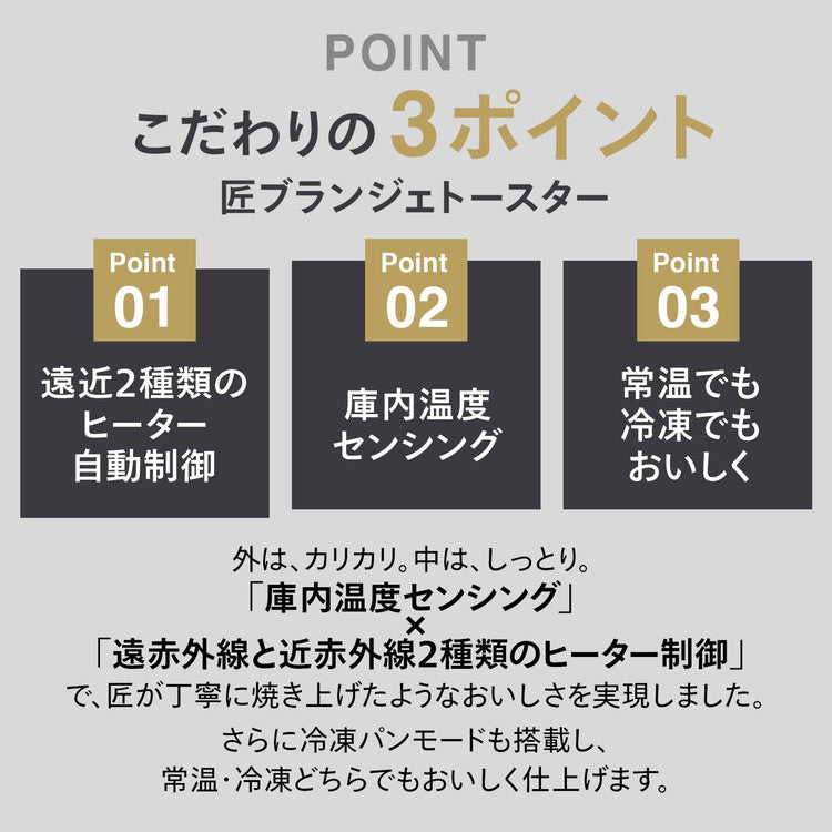匠ブランジェトースターTS-D486Bは、※のパン職人、浅井一浩氏と共同開発し、匠の火入れを独自の火力調整プログラムで再現。