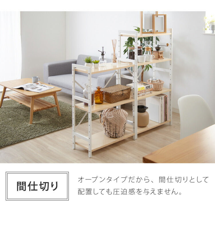 棚板の高さは5cm間隔に組み替えることができ、漫画本やカバンなど大小さまざまなものを収納可能。