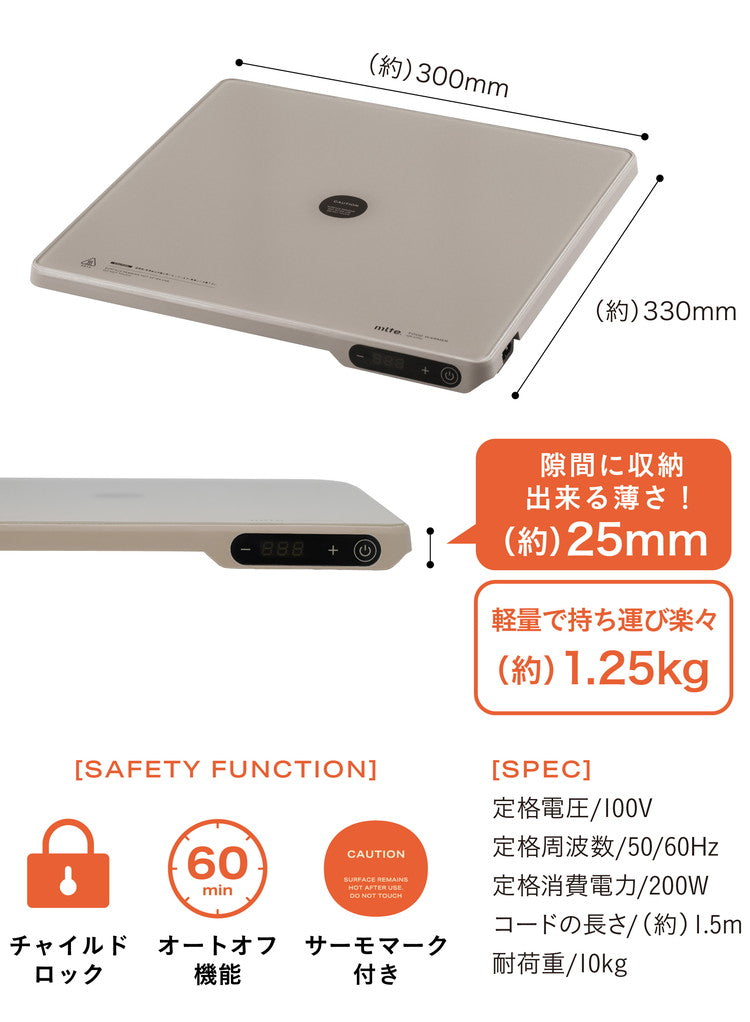 操作パネルやボタンを側面に配置することによって、プレートの天面が全体的に温まるような仕様になっています。