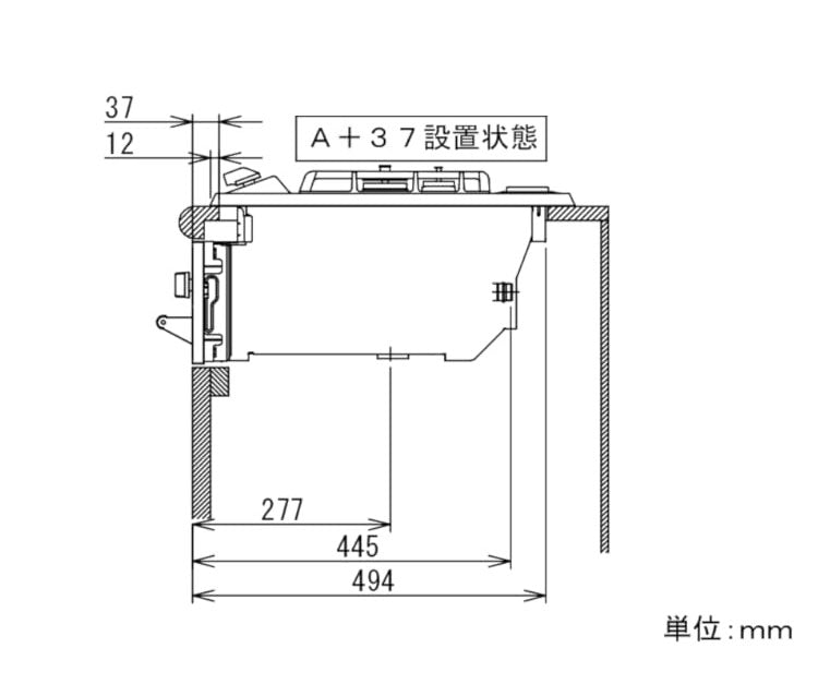 ■外形寸法:高さ268.5mm×幅598mm×奥行494mm(トッププレート幅738mm)