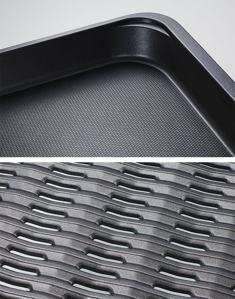 ●穴あきプレートで焼肉をおいしく!穴から肉の余分な脂を落として煙や油の飛び散りを抑える「深型穴あき焼肉プレート」